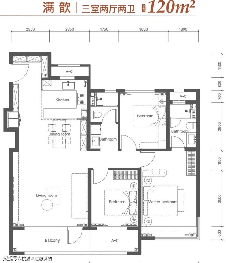客厅延伸出去的阳台相当于连接了次卧的设备间赠送,演变成一个大阳台,像100㎡户型阳台就可以做到6.6米;120㎡就是7.7米。