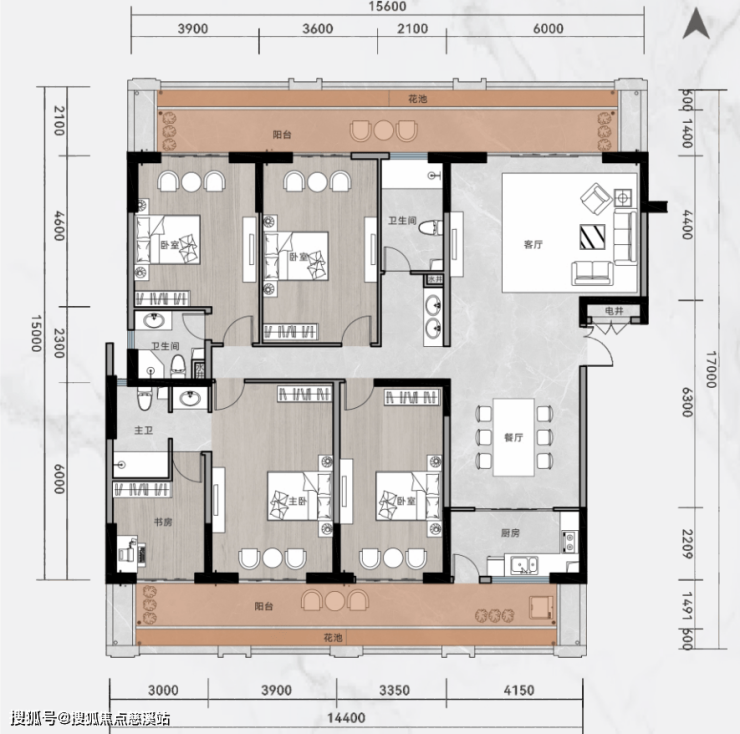 【主力户型】建筑面积约105-145㎡二至四房