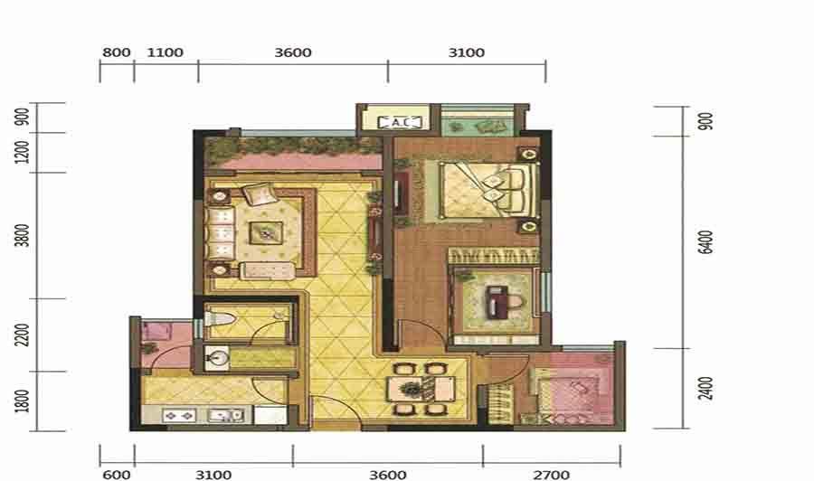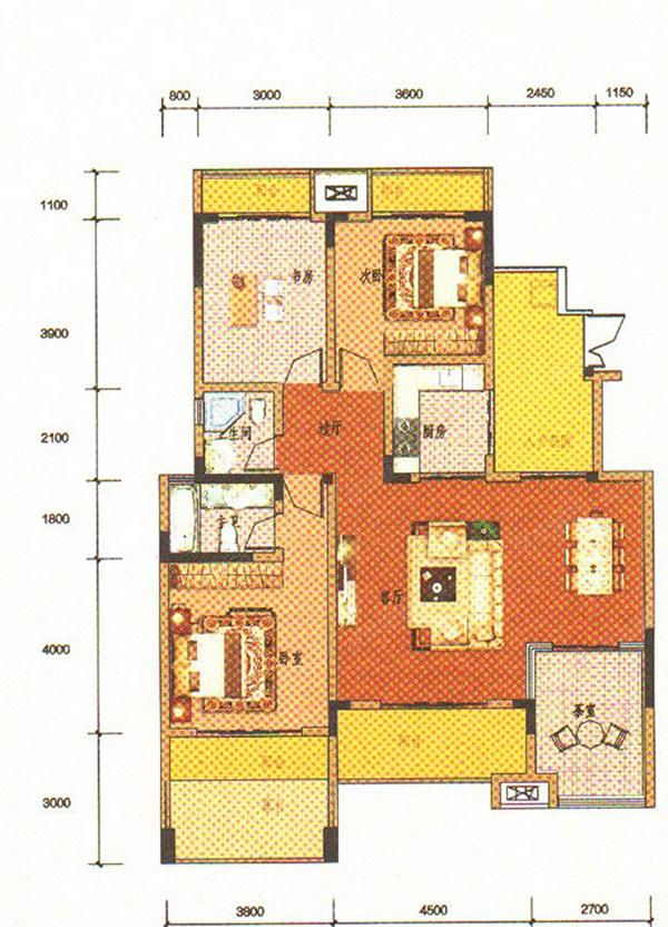 3室1厅2卫-洋房A-8 117.49㎡户型