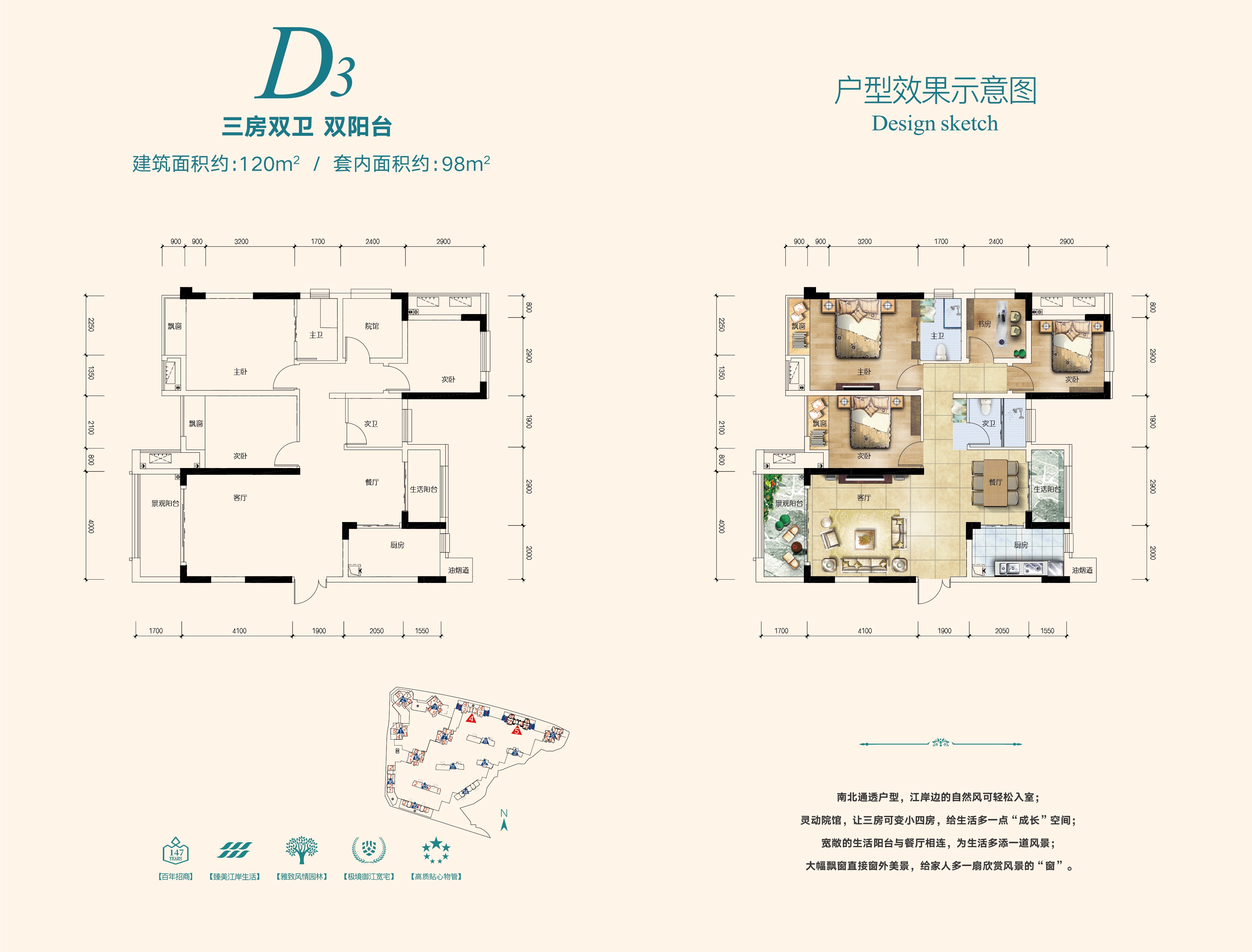 招商雍江府落位于巴滨路马桑溪大桥旁,重庆排名前列CAZ中央生活区,两江四岸核心区核心地段,坐拥四横三纵三桥一内环一隧道两轨道立体交通体系,快速达到主城各区,临近龙湖天街商业,坐享繁华生活,优享教育、医疗配套及宽阔江景视野,是招商蛇口礼献山城诚意之作,升级滨江人居生活。