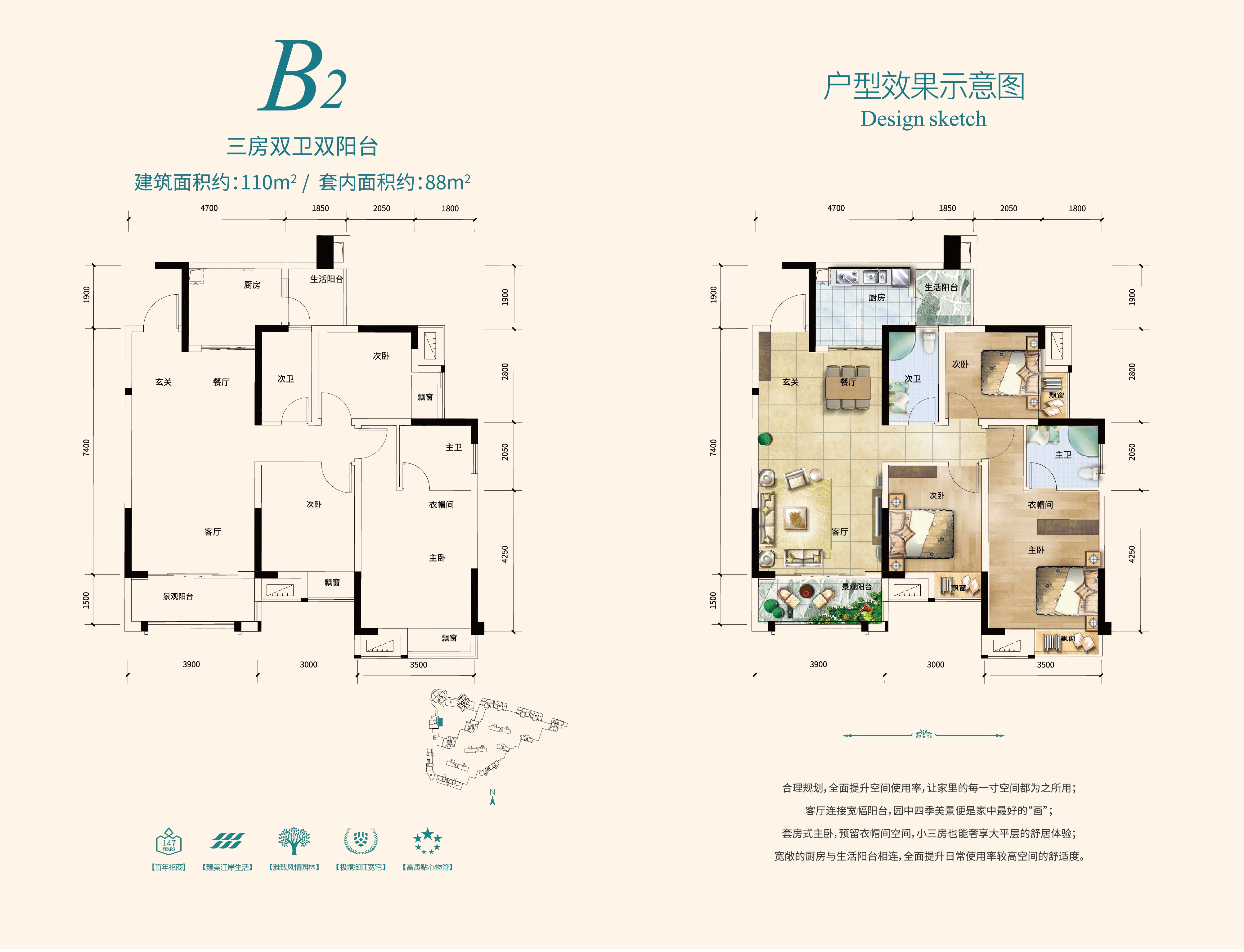综合商场:龙洲湾商圈;李家沱商圈;9.2万方的自持商业,从超市、银行、餐饮、诊所等方面解决业主的日常生活;