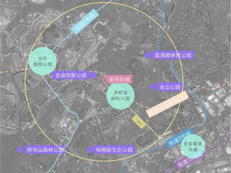 金开玖號位于两江新区爱琴海商圈旁(龙安路与龙健路交汇处),整个项目占地25亩,建筑面积8.5万方,容积率2.99,项目规划2栋楼,(1栋公寓1栋住宅)和部分社区商业以及部分公交停靠车库。项目步行至爱琴海商业中心5-8分钟,周边公园、交通、教育等基础配套设施完善目前在售B栋住宅楼。