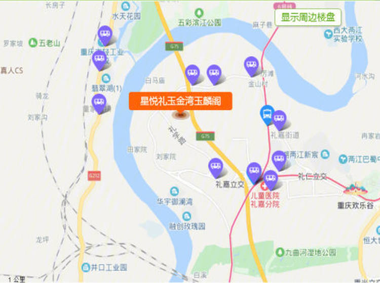 与轻轨6号线礼嘉、金山寺、九曲河站相邻