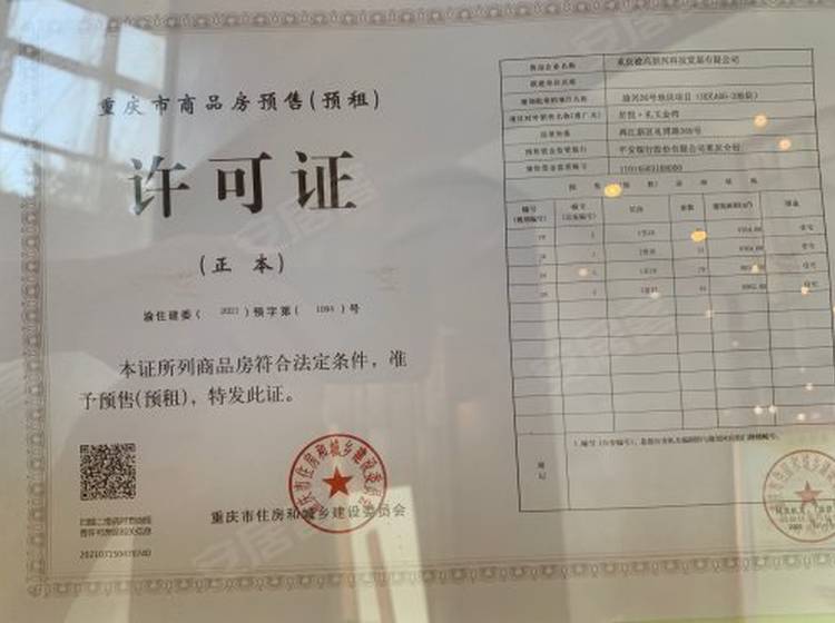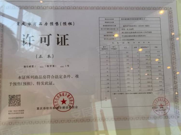 - 渝住建委(2024)预字第(94)号 详情发证时间 2024-03-28绑定楼栋新地块洋房1幢、新地块洋房2幢、新地块洋房3幢、新地块洋房4幢
