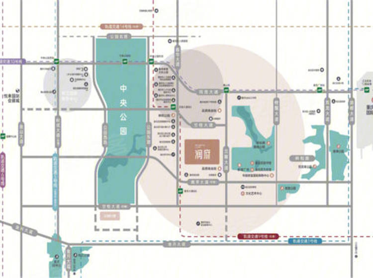 润府位于重庆市渝北中央公园顺义路与兰馨大道交汇处。