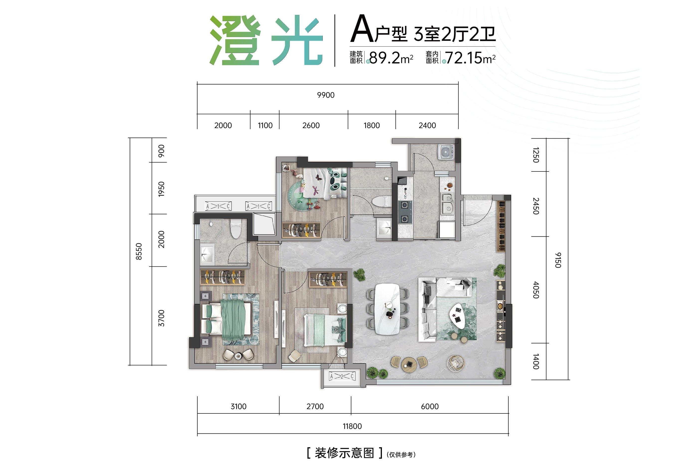 3室2厅2卫-A户型建面约89.2平
