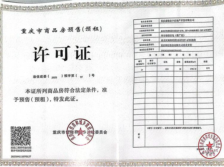- 渝住建委(2025)预字第(97)号 详情发证时间 2025-04-11绑定楼栋2期2#
