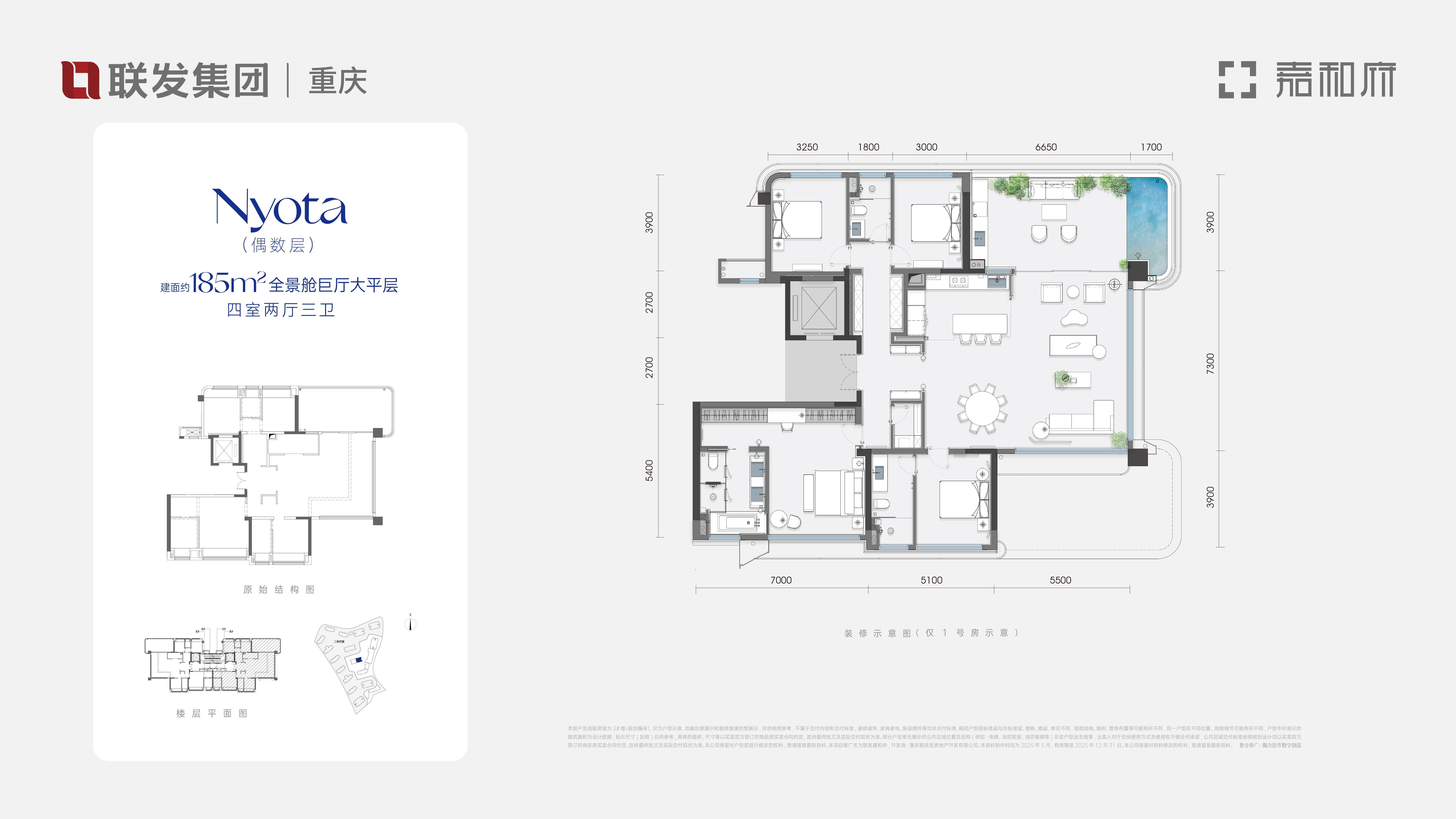 4室2厅3卫-185㎡全景舱巨厅大平层-偶数层