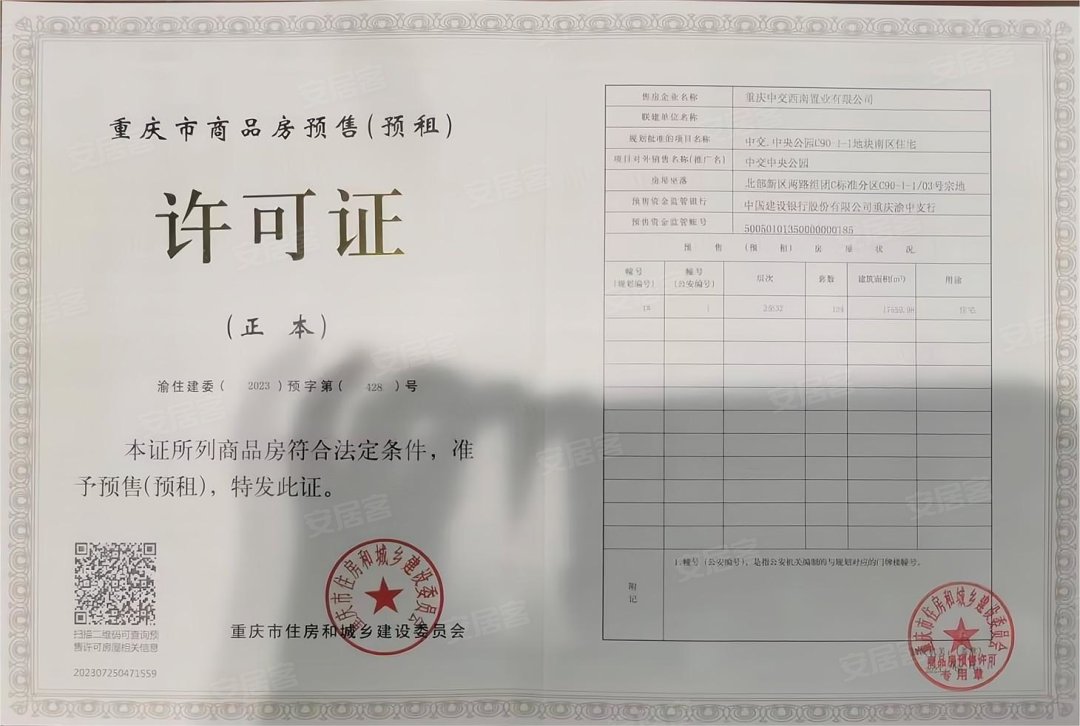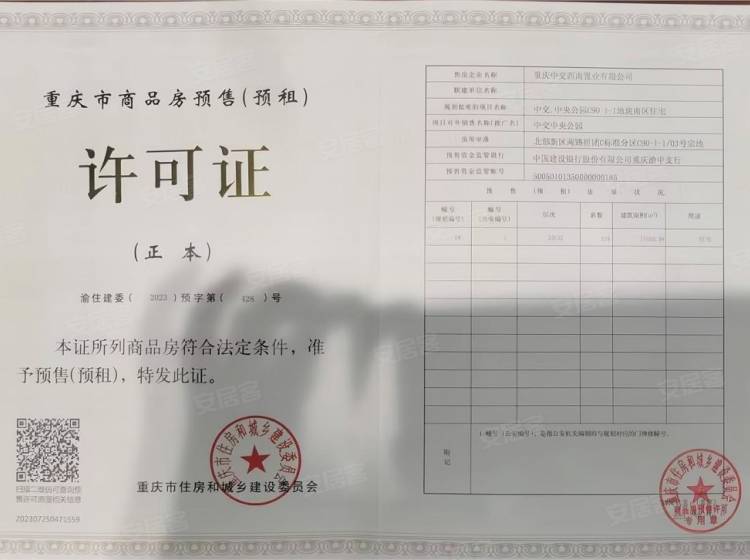 - 渝住建委(2023)预字第(428)号 详情发证时间 2023-07-25绑定楼栋C90地块-1号楼