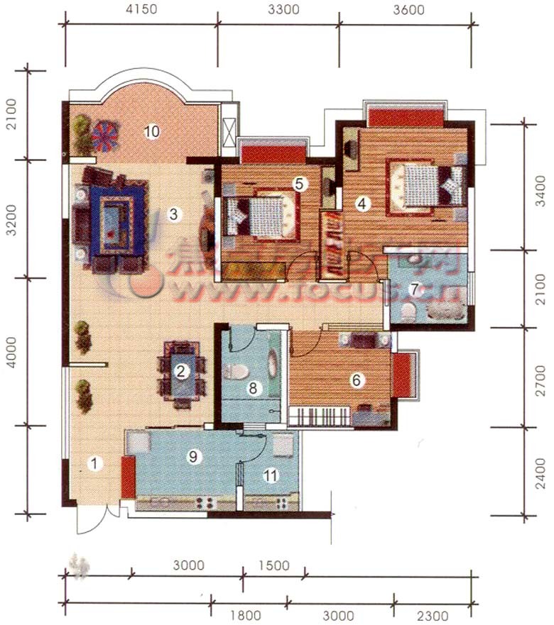 3室2厅2卫-渝高和泰家园1、2号错层三室两厅双卫套内面积110.33㎡