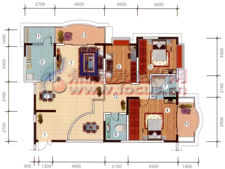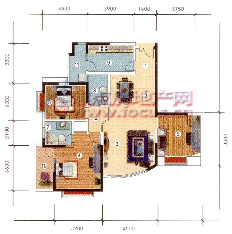 3室2厅2卫-渝高和泰家园5号平层三室两厅双卫套内面积93.78㎡