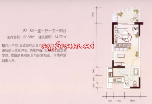 1室1厅1卫-B1、B10一室一厅一卫一阳台