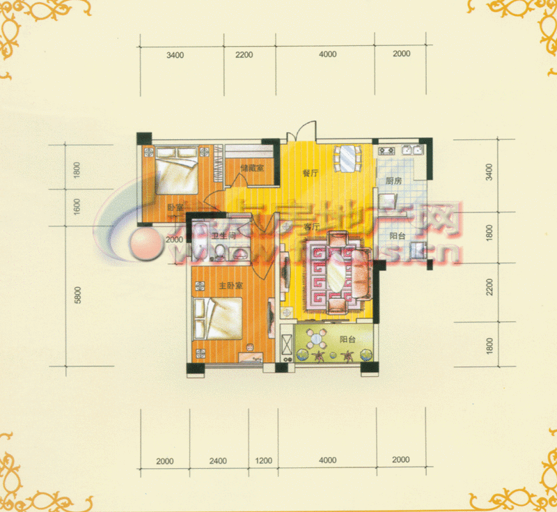 2室2厅1卫-天江鼎城2号楼1-2型两室两厅一卫面积81.92㎡