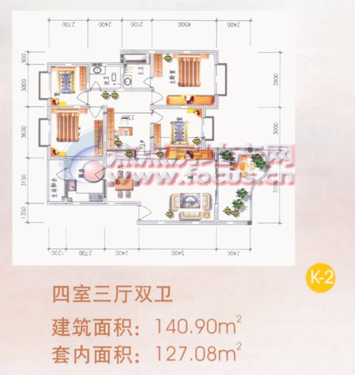 4室3厅2卫-K-2型错层四室三厅双卫127.08㎡