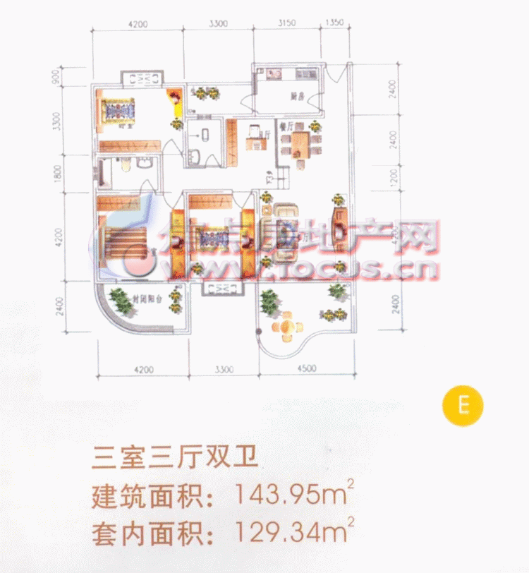 3室2厅2卫-E型错层三室两厅双卫129.34㎡