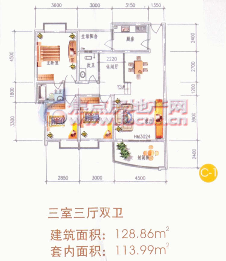3室3厅2卫-C-1型错层三室三厅双卫113.99㎡