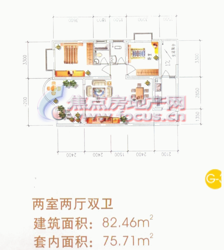 2室2厅2卫-G-3型两室两厅双卫75.71㎡