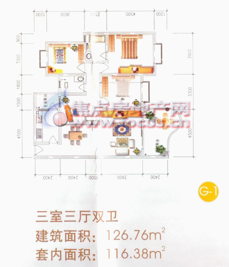 3室3厅2卫-G-1型错层三室三厅双卫116.38㎡