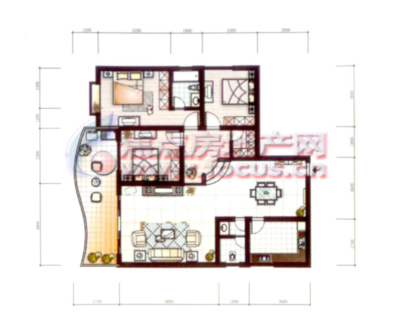 3室2厅2卫-金桂苑青年社区(南苑)三室两厅双卫127.81㎡