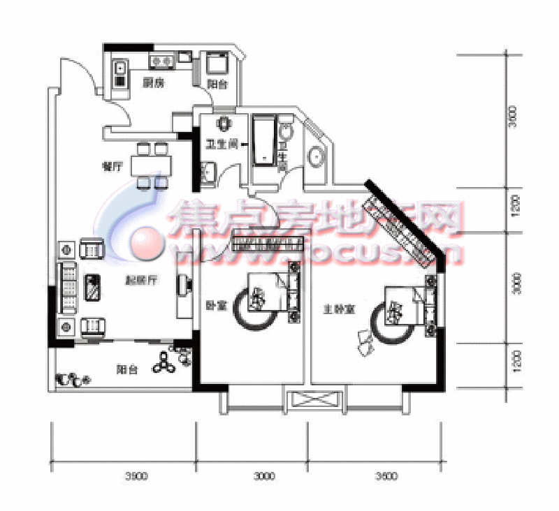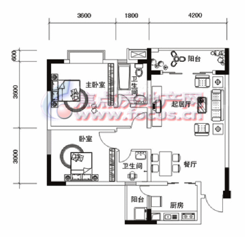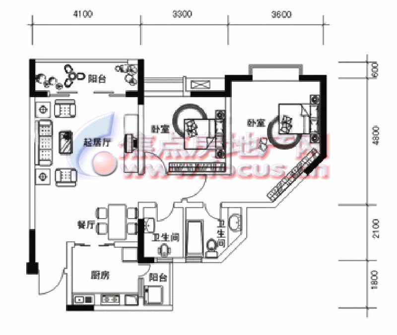 2室2厅2卫-幸福雅舍D-6型两室两厅两卫套内71.35㎡