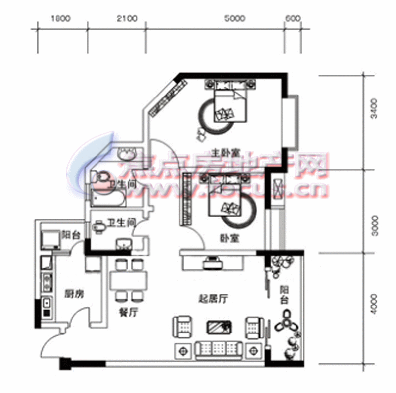 2室2厅2卫-幸福雅舍D-5型两室两厅两卫套内71.95㎡