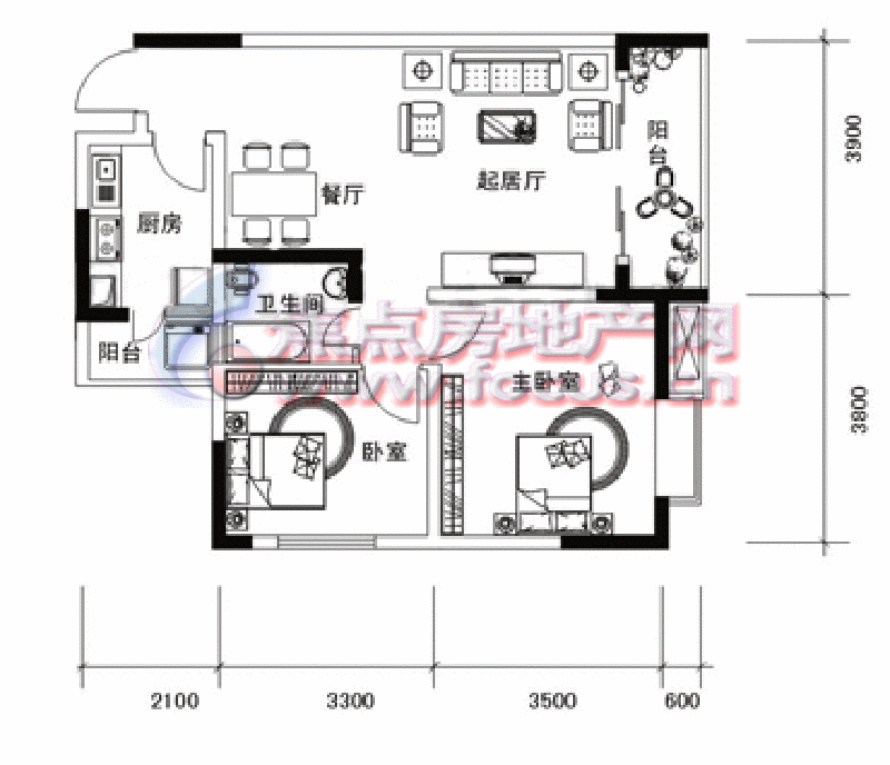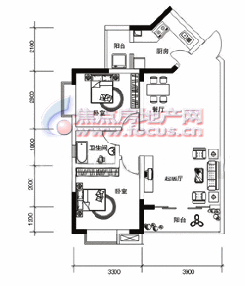 2室2厅1卫-幸福雅舍C-2型两室两厅一卫套内67.25㎡