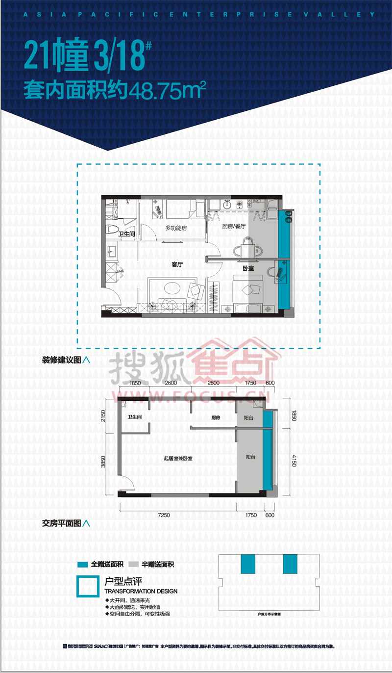 0室-亚太商谷21幢3、18号户型套内48.75㎡