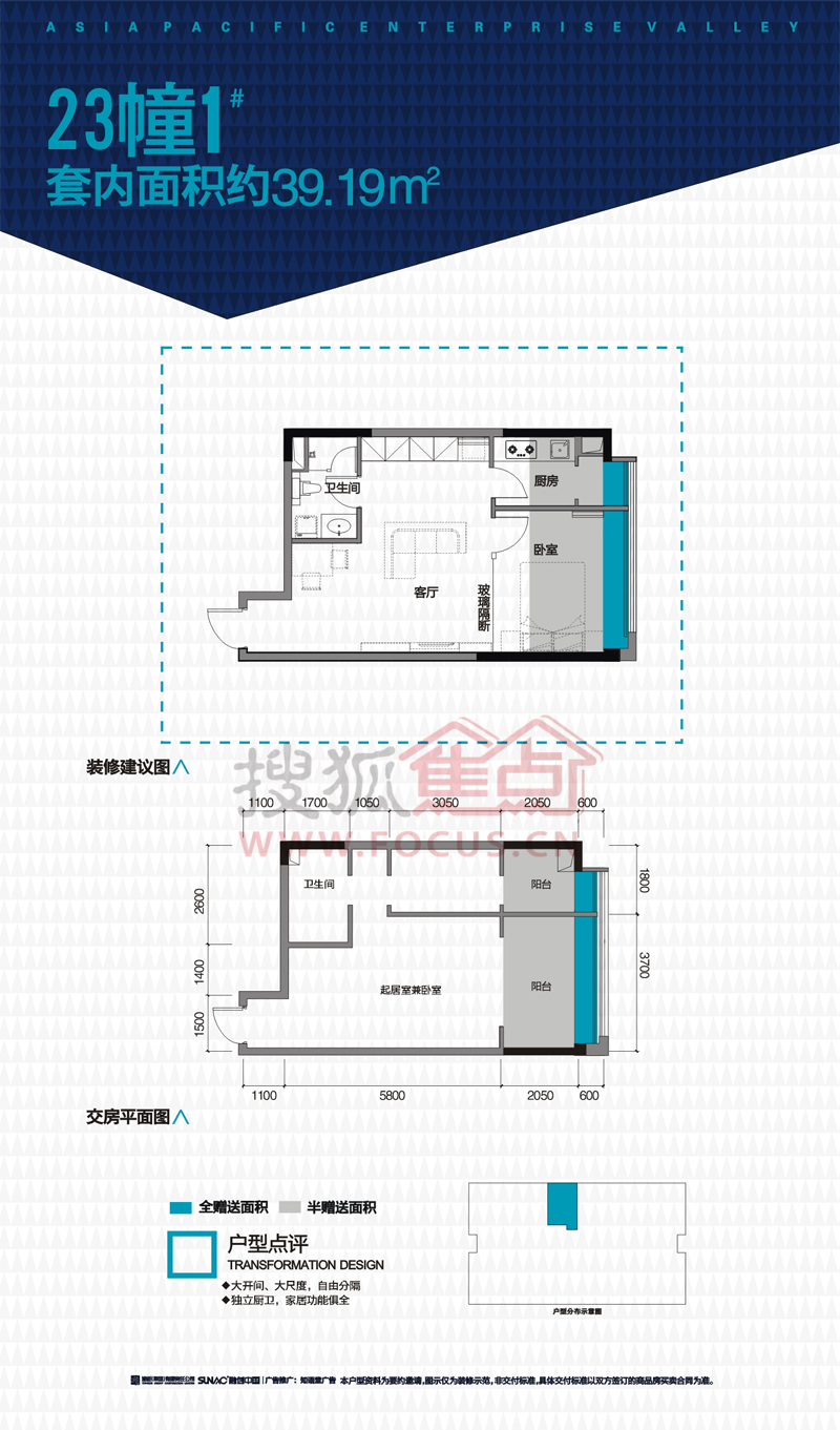 0室-亚太商谷23幢1号户型套内39.19㎡