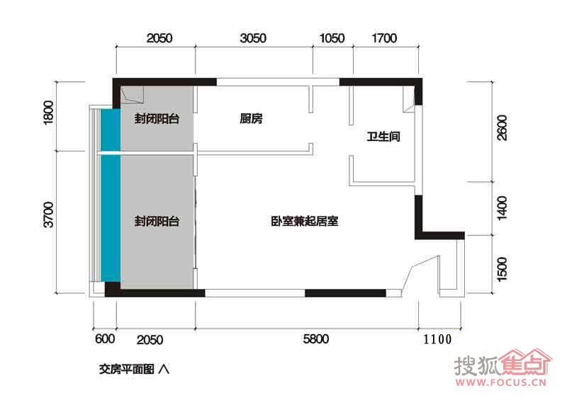 0室-亚太商谷三期6、7号楼标准层15、16号房一室一卫30.41㎡