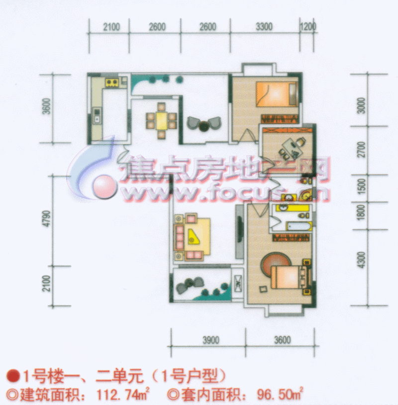 0室-金易星辰1号楼1、2单元1号套内96.50㎡