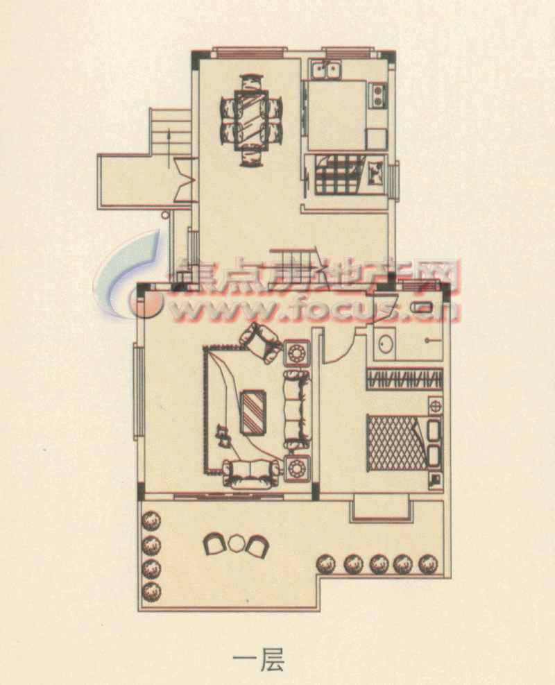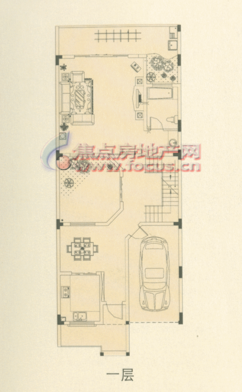 0室-山溪谷墅A1叠加别墅一层平面总套内167.13㎡