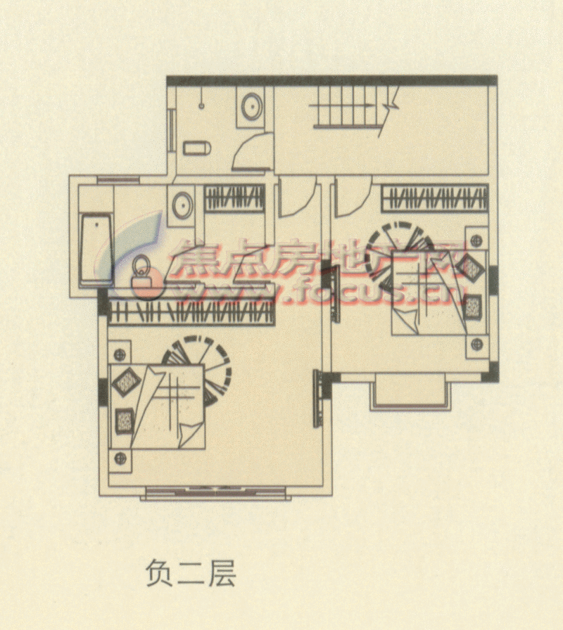 0室-山溪谷墅A2叠加别墅负二层平面总套内155.53㎡