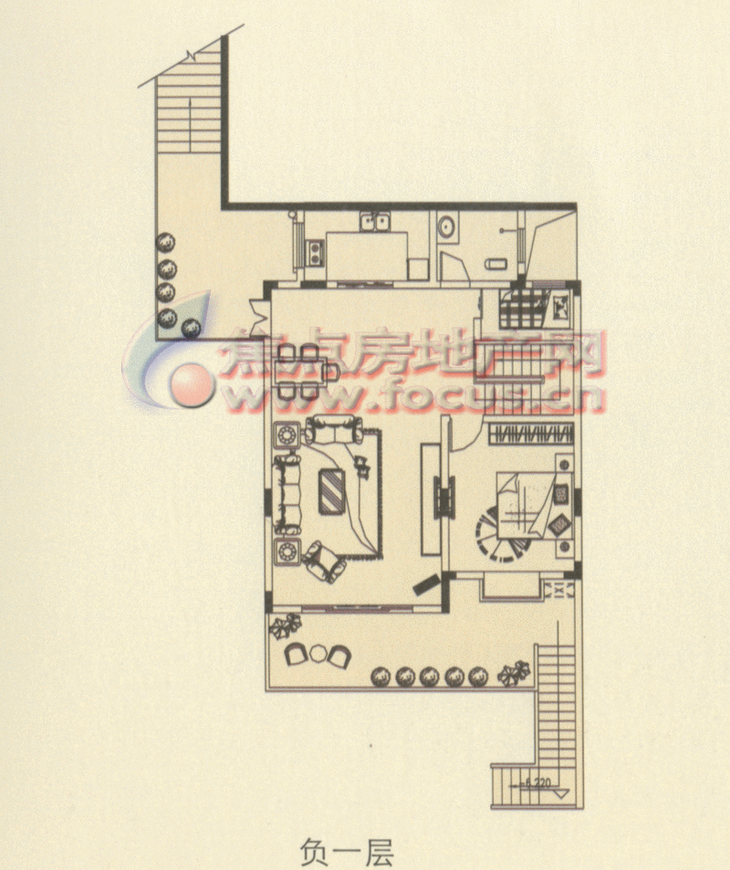 0室-山溪谷墅A2叠加别墅负一层平面总套内155.53㎡
