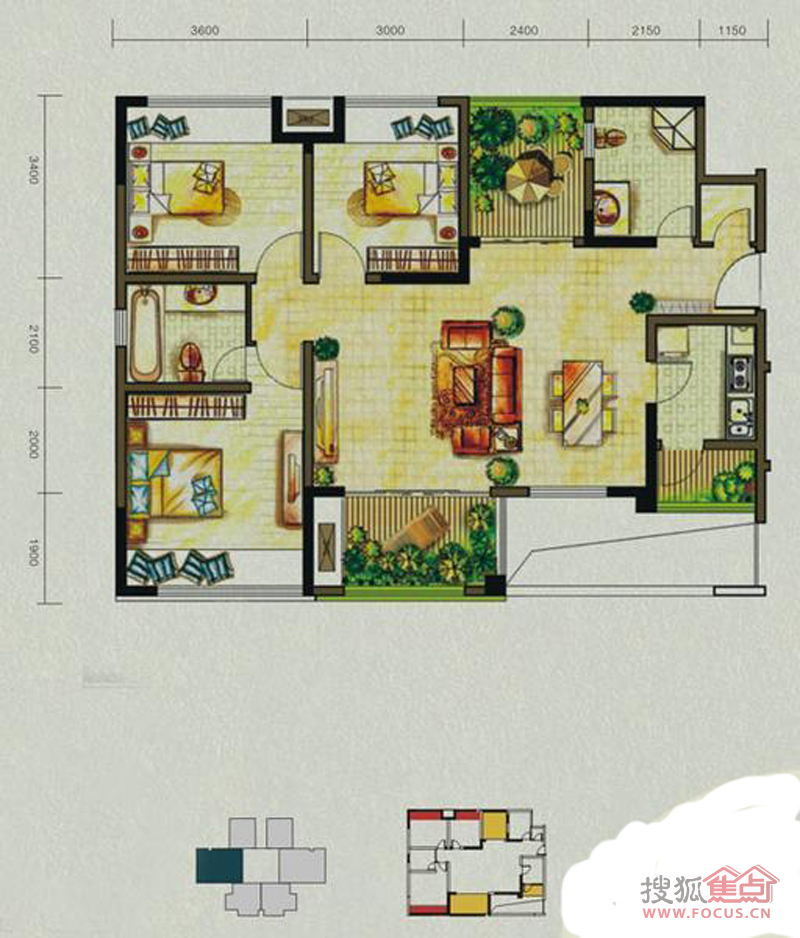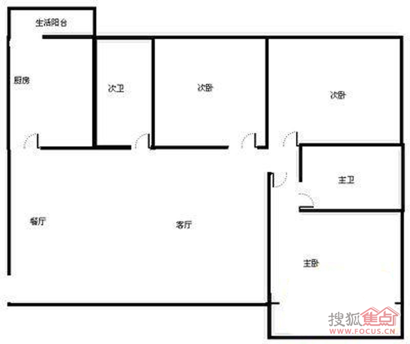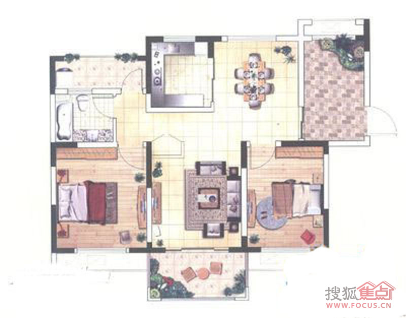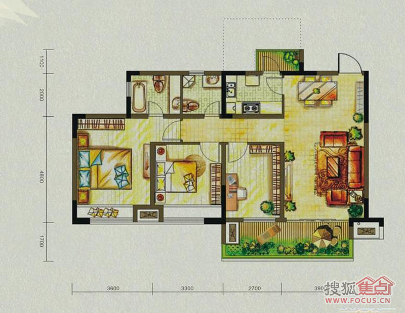 3室2厅1卫-俊豪中央大街一期2号楼标准层C户型3室2厅1卫1厨88.50㎡