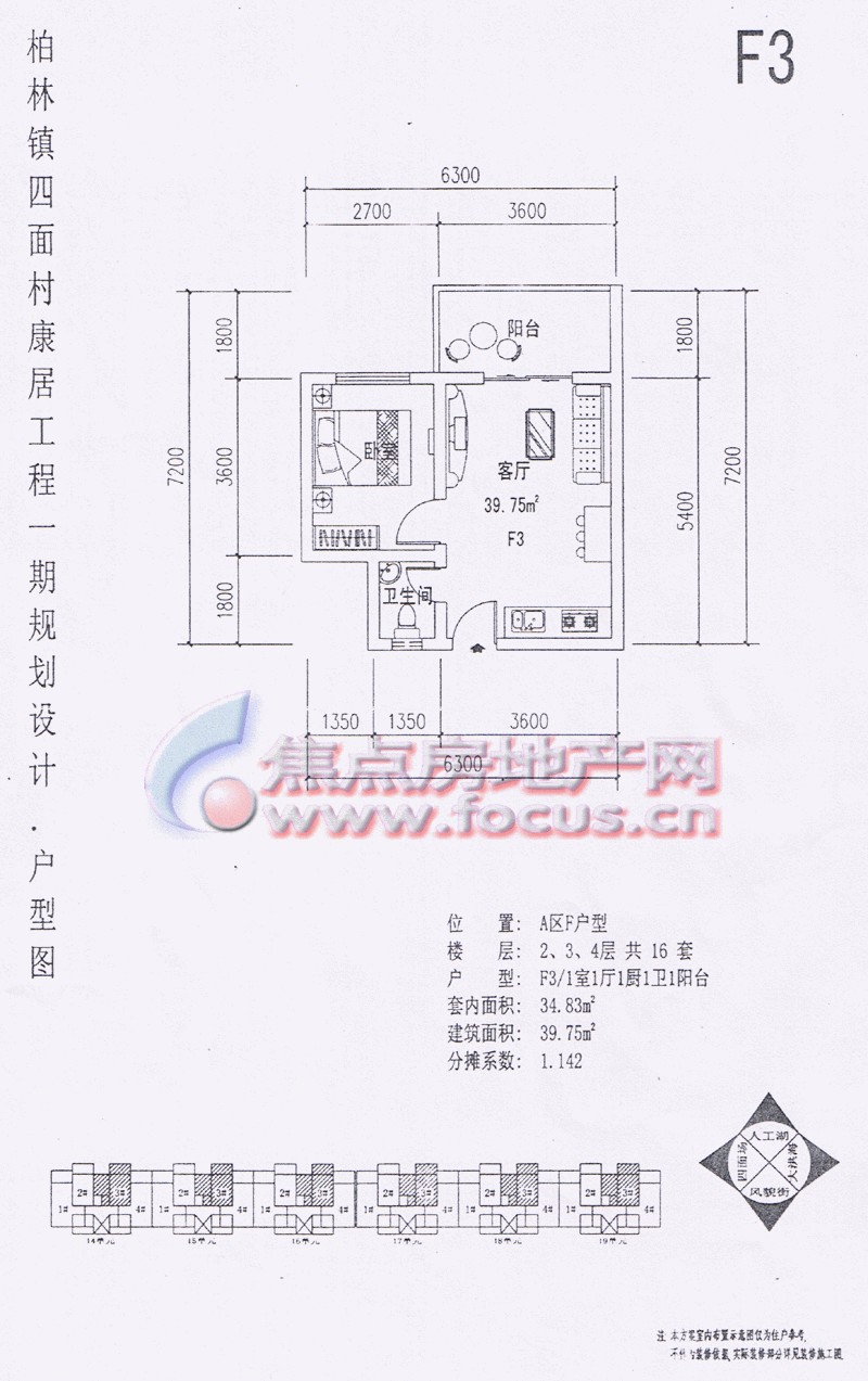 1室1厅1卫-享湖云居一期F3型一室一厅一卫套内34.83㎡