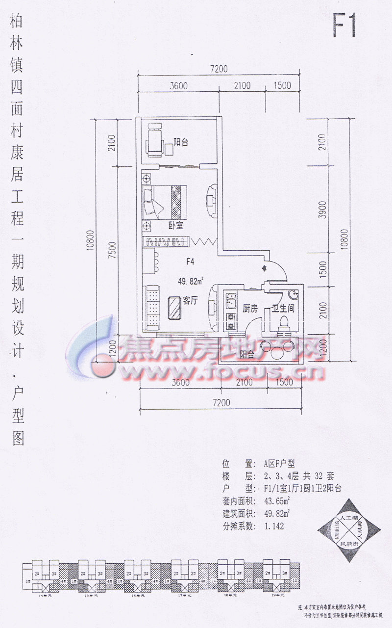 1室1厅1卫-享湖云居一期F1型一室一厅一卫套内43.65㎡