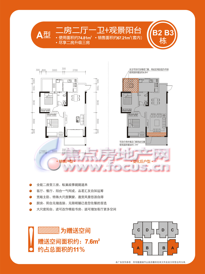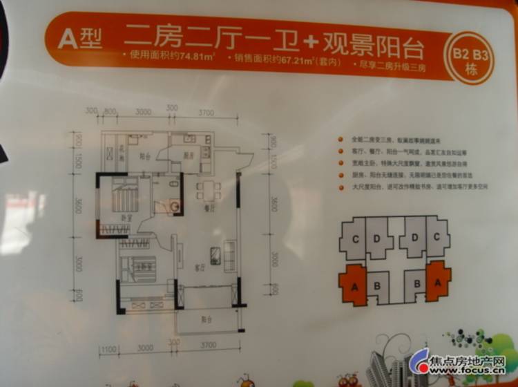 2室2厅1卫-金科蚂蚁SOHO二代B2、B3栋A型两室两厅一卫套内67.21㎡