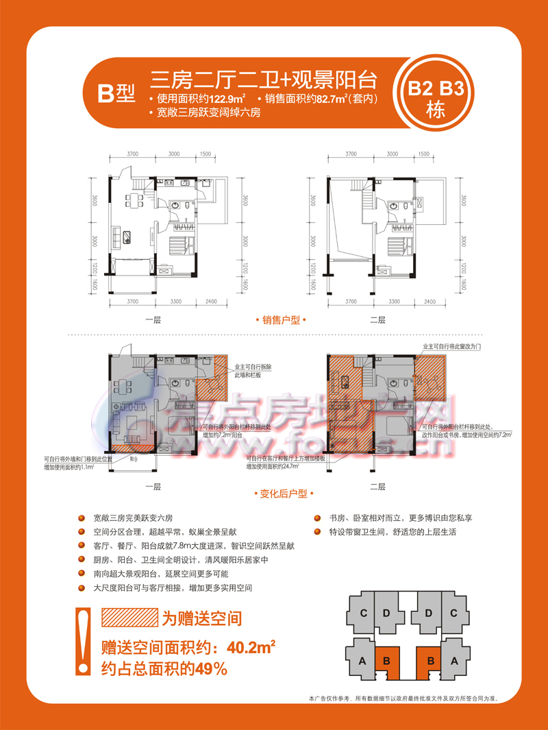 3室2厅2卫-金科蚂蚁SOHO二代B2、B3栋B型三室两厅两卫套内82.70㎡