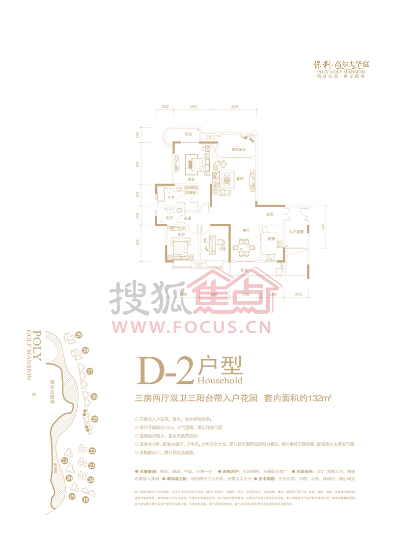 0室-保利高尔夫华庭D-2户型三室两厅两卫三阳台132㎡