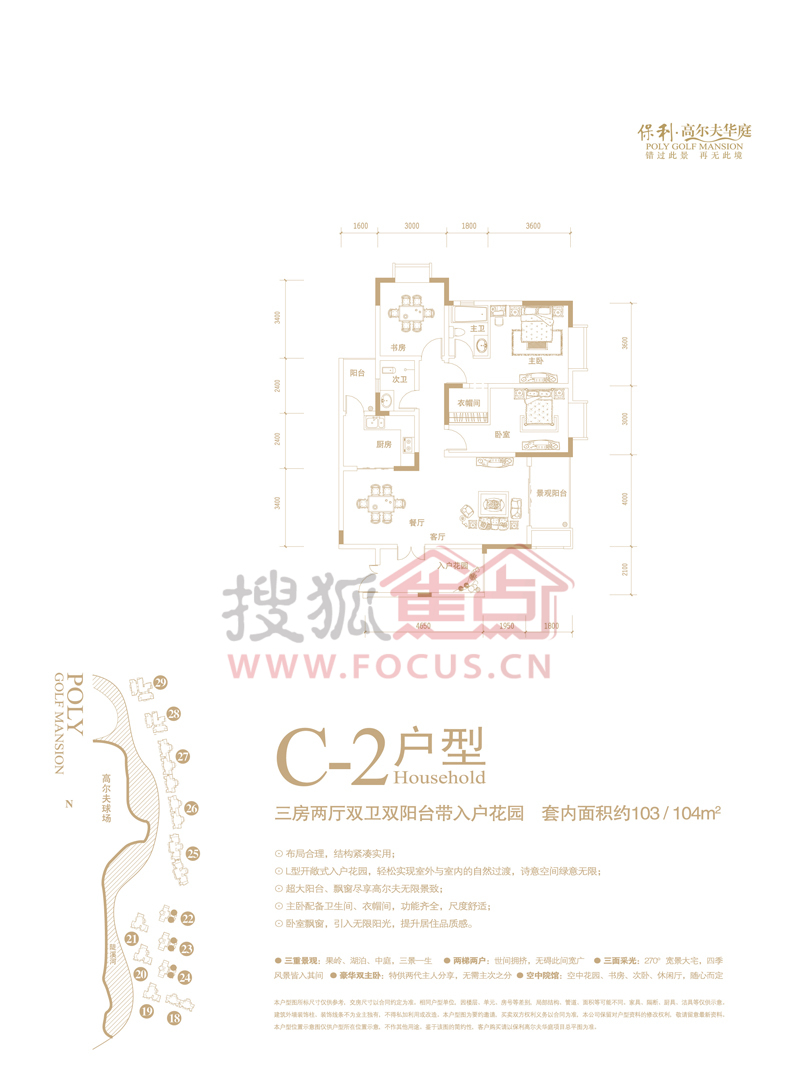0室-保利高尔夫华庭C-2户型三室两厅两卫双阳台103、104㎡