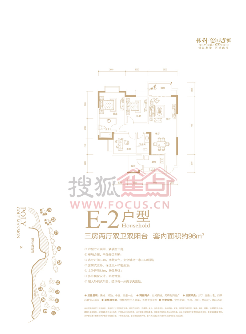 0室-保利高尔夫华庭E-2户型三室两厅两卫双阳台96㎡