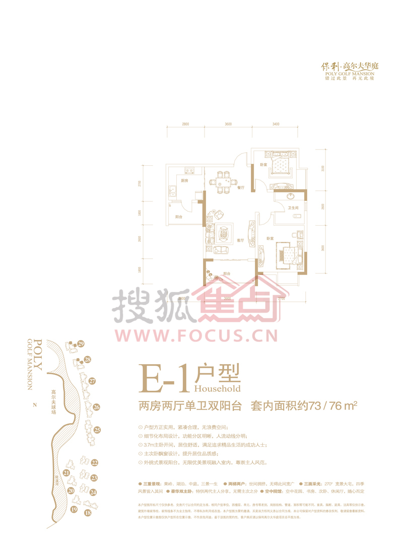 0室-保利高尔夫华庭E-1型两室两厅单卫双阳台73、76㎡