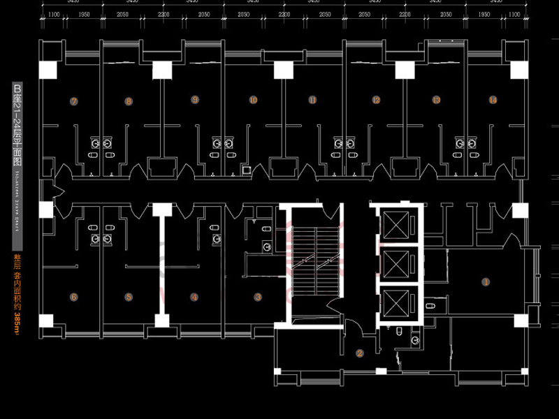 0室-九街高屋二期A座14-15、17-31、33-36层整层平面图590.00㎡