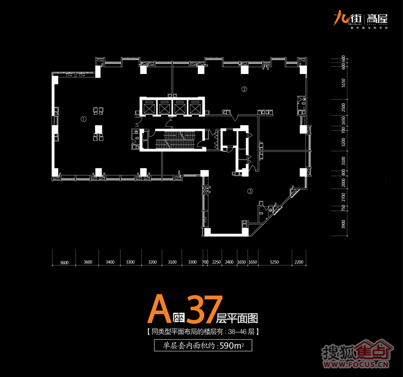0室-九街高屋二期A座37-46层整层平面图590.00㎡