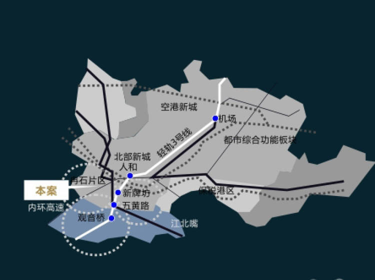 公交线路605(盘溪转盘——两路口)、205(龙井花园——土湾)、117(通用厂——绿韵康城)、128(红旗河沟——石桥铺)等10余条,规划中的轻轨线。
