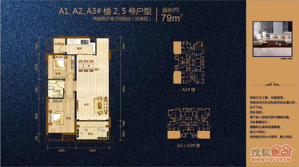 2室2厅1卫-金科中央公园两室两厅一卫双阳台套内79㎡户型图