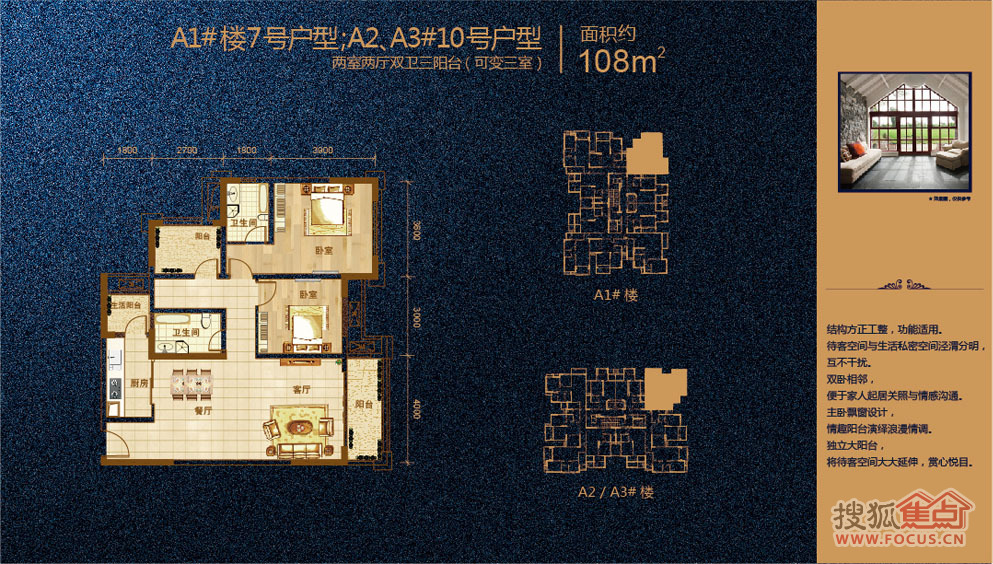 2室2厅2卫-金科中央公园两室两厅双卫三阳台套内108㎡户型图