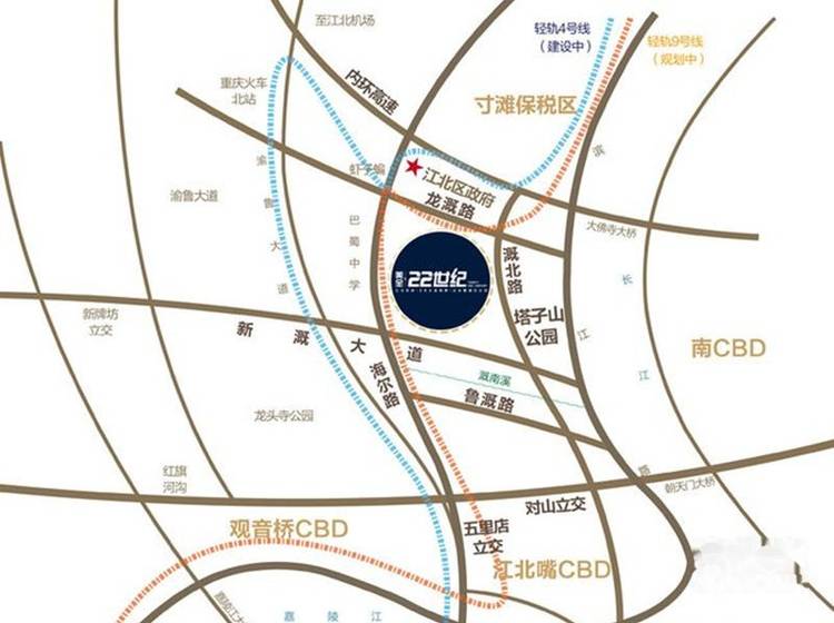 观音桥--兴塔路--兴隆路--洋河东路--五红路--五福路--海尔路--美全22世纪