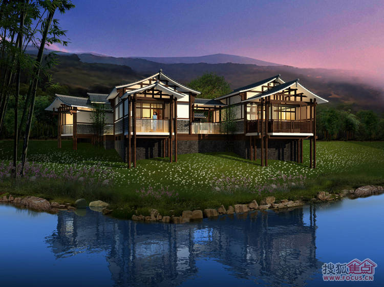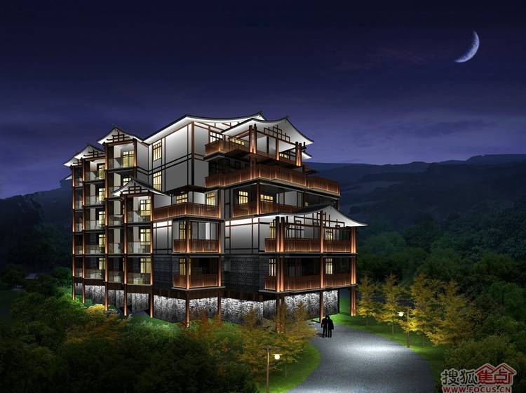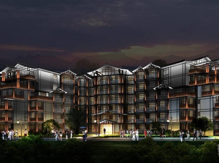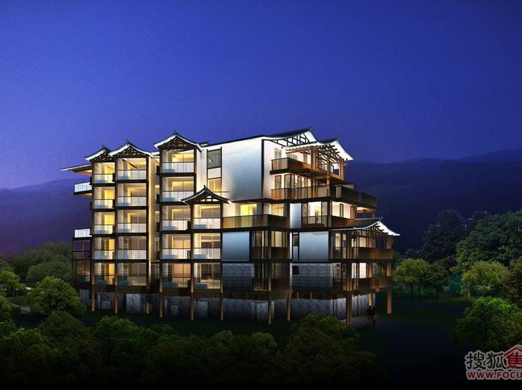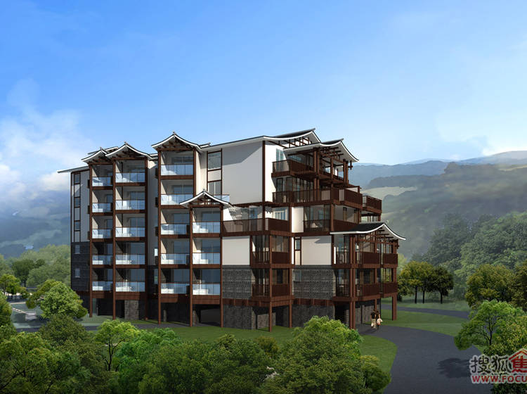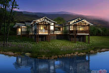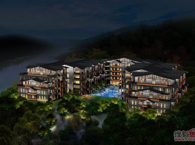 心景·汤天下将重庆吊脚楼风格建筑和坡地景观充分结合,融入温泉养生文化,打造具有重庆地域文化特色的高端温泉度假产品。