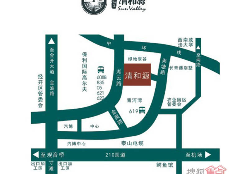 清和源紧邻寸滩两路保税港及出口加工区。周边保利高尔夫、长青藤、青河湾别墅环绕,是重庆高尚社区聚集地。
